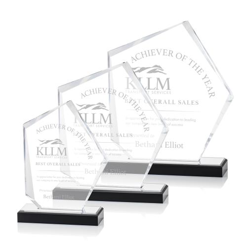 Honor exceptional accomplishments with the O'Neill Silver Unique Acrylic Trophy, a symbol of recognition that artfully blends elegance and innovation. Its sleek, reflective silver surface is skillfully crafted to infuse the award with a dynamic radiance, emphasizing the import of your personalized message. Mounted on a polished ebony base that firmly anchors its striking presence, the trophy's distinctive design boasts crisp angles and a captivating interplay of light and shadows, creating a spectacular frame for commemorating achievements. This trophy, with its fusion of modern aesthetics and traditional prestige, is the perfect centerpiece for recognizing and celebrating personal or professional milestones.