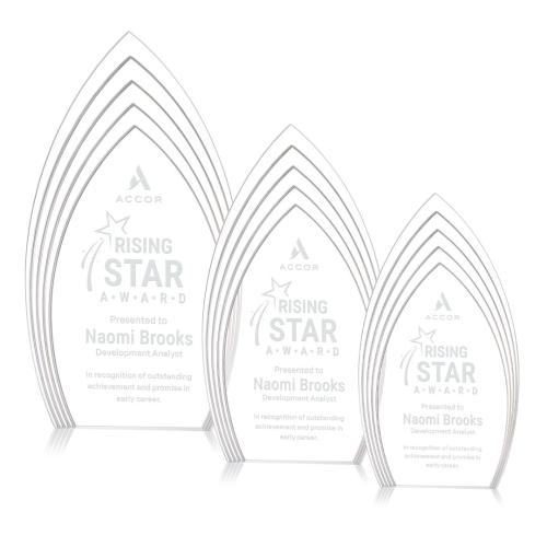 The Turello Clear Peaks Acrylic Trophy is a sophisticated choice for celebrating excellence, offering a modern and eye-catching design that stands out in any setting. Crafted from high-quality acrylic, this trophy features a sleek, freestanding shape with layered peaks that embody achievement and success. Its vibrant color accents at the base reflect elegantly upward, casting a gentle glow throughout the award, creating a stunning visual impact. Available in gold, sapphire, and clear variations, the Turello trophy is perfect for recognizing outstanding accomplishments in a stylish and contemporary manner. Personalization options allow you to tailor it for any occasion, making it an ideal choice for corporate events and special recognitions.