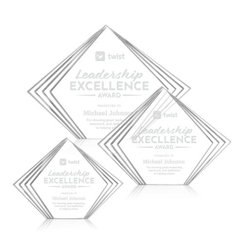 Introducing the Crawford Clear Acrylic Trophy, a modern masterpiece perfect for honoring exceptional achievements. This elegant award features a unique diamond-shaped design with layered side accents that create a stunning visual depth. Crafted from premium clear acrylic, it offers a spacious area for custom full-color graphics, logos, or heartfelt messages, making it an ideal canvas for personalization. The Crawford Trophy stands out with its contemporary flair, delivering a bold and eye-catching presentation that truly celebrates excellence and outstanding performance. Make every recognition moment memorable with this versatile and striking award.