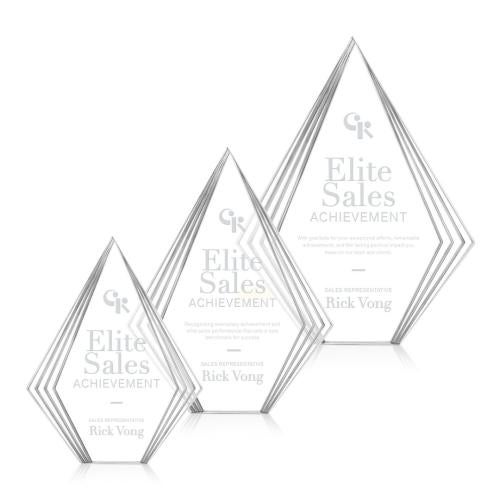 Introducing the Brantley Clear Acrylic Trophy-a testament to achievement and elegance. This freestanding award features a tall diamond shape with multi-layered, stepped edges that beautifully play with light and depth. Its clear center offers an ideal canvas for personalized engravings or vibrant artwork, ensuring your message stands out. The beveled frame adds a touch of modern sophistication, making it a perfect choice for recognizing top sales, leadership, or significant milestones. Choose from Clear, Gold, or Sapphire accents to best suit your occasion. Celebrate success with a piece that truly embodies excellence.