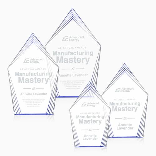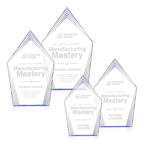 The Grayson Blue Peaks Acrylic Trophy is a captivating choice for corporate recognition, blending modern design with timeless elegance. Crafted from premium acrylic, this award features layered geometric peaks that create a stunning dimensional look, highlighting any achievement with sophistication. Its precision-cut details ensure exceptional clarity and a polished, high-end finish, reflecting the excellence it celebrates. Perfect for honoring significant accomplishments, this trophy makes a bold statement, offering a beautiful yet understated backdrop for customized engravings. Celebrate success with a piece that is both meaningful and visually striking.