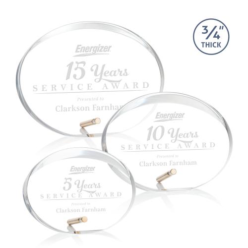 Celebrate success and commemorate achievements with the elegant Huggis Gold Circle Acrylic Trophy, a symbol of appreciation that blends sophistication with modern simplicity. Fashioned from premium quality, 3/4" thick acrylic, this trophy boasts a pristine, circular shape with a beveled edge that captures and refracts light, exuding a subtle glow. The trophy is complemented by a choice of a gold or silver easel pin, providing both form and function for an impressive display. Perfect for recognizing years of service, remarkable accomplishments, or significant milestones, this trophy can be personalized to honor each recipient in a truly unique way. The Huggis Gold Circle Acrylic Trophy is a timeless and cost-effective option for making anyone feel honored and valued.