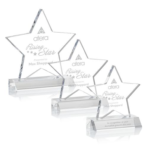 Illuminate the achievements of standout individuals with the Hwang Star Acrylic Trophy - the quintessential emblem of excellence. This gleaming star-shaped award, masterfully crafted from high-quality acrylic, showcases a crystal-clear finish with pristine flat edges, designed to reflect the ambition and success of its recipient. Available in three distinct sizes to suit various levels of recognition, the trophy is elegantly poised atop a sleek, front mitered base that affords both stability and style. Opt for second position laser engraving to add a personalized touch to this already stellar accolade. Whether to honor breakthrough performances or significant milestones, the Hwang Star Acrylic Trophy is a budget-friendly yet sophisticated choice to celebrate the shining stars of any organization.