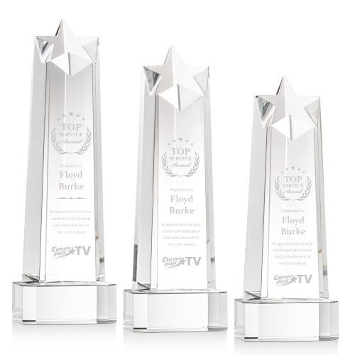 Celebrate outstanding achievements with the Delaware Star Award, a beacon of recognition that perfectly blends elegance and honor. Expertly crafted in thick, optical crystal, this award forms a majestic tower that culminates in a beautifully faceted star, symbolizing the pinnacle of success. The award stands proudly on a choice of a sophisticated clear, emerald, sapphire, or ebony optical crystal base, each enhancing the award's radiant clarity and exceptional quality. This award is an ideal choice for acknowledging exceptional star performances, milestones, and leadership qualities in any field. It comes exquisitely packaged in a black, satin-lined presentation gift box, ready to be bestowed upon those who have distinguished themselves by their stellar contributions. Please note that all items are provided blank, allowing for personalized engraving to tailor this distinguished award to your specific event or honoree's achievement.