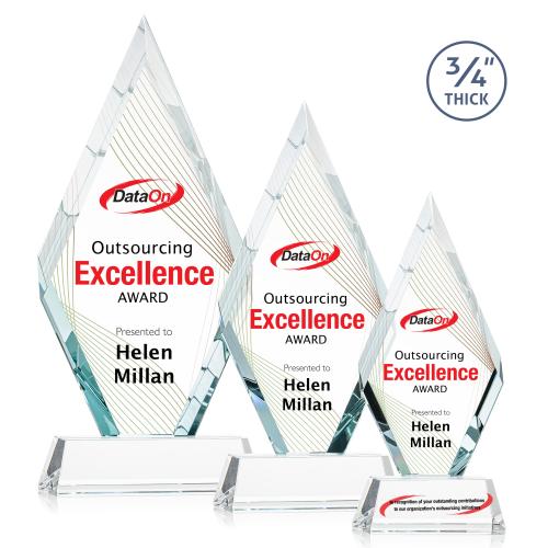 Embodying elegance and prestige, the Richmond Full Color on Helton Clear Diamond Crystal Trophy presents a brilliant opportunity to honor excellence and achievement. This radiant award features expertly beveled edges that capture and reflect light, adding a dynamic sparkle to the classic diamond shape. Constructed from premium crystal with a hefty 3/4" thickness, it rests upon a stately tapered base available in eight distinctive colors, allowing for personalization that aligns with your brand or event theme. The crystal clear canvas is perfect for full-color vivacious imagery or inscriptions, with the option to add a second imprint on the base for a truly custom award. Whether it's for corporate recognition, educational accomplishments, or personal milestones, this trophy is designed to leave a lasting impression of appreciation and honor.