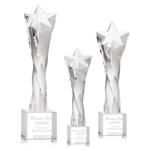 Elevate your recognition with the Arlington Star on Square Base Crystal Trophy, an emblem of achievement and success. Gracefully ascending to reveal a precision-cut star silhouette, this Optical Crystal award embodies aspiration and excellence. The captivating twist design leads to a star shape expertly etched at the summit, symbolizing the pinnacle of accomplishment. Rested upon a solid crystal cube base, it provides an ideal canvas for your custom messages of commendation. Each trophy is presented in a luxe satin-lined gift box, making it a stellar choice for corporate awards, personal milestones, or as a showpiece of honor. With its clear, pristine crystal composition, the Arlington Star Trophy captures the essence of triumph and is sure to leave a lasting impression on every recipient.