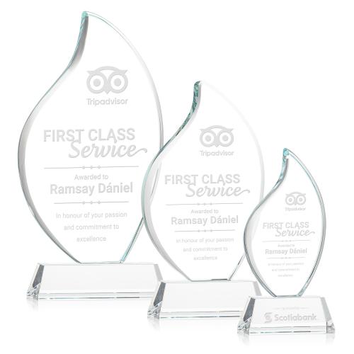 Ignite a sense of pride and prestige with the Teague on Helton Clear Flame Crystal Trophy, a symbol of excellence and recognition. Skillfully crafted from luxurious Starfire Crystal, this trophy boasts a 3/4" thick flame silhouette with gracefully rounded edges that are as smooth as the success it celebrates. Poised atop a choice of clear or elegantly tinted Optical Crystal Newhaven Base, this award epitomizes the clarity of achievement. Each trophy is nestled within a black satin-lined presentation box, making it a treasured keepsake for any recipient. Optional second position etch and color-fill customization offer a personalized touch to commemorate extraordinary accomplishments. Whether for corporate recognition, personal milestones, or academic honors, this crystal flame trophy is imbued with the spirit of triumph and will be cherished for years to come.