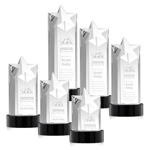 Honor outstanding achievement with the distinguished Weber Star on Lockwood Base - Black, a symbol of excellence and high aspiration. Skillfully crafted from premium quality crystal, this award features a flawlessly cut star poised atop an elegant ebony base, reflecting brilliance and clarity. Ideal for commending stellar performance, exceptional leadership, or a significant milestone, this award offers a grand gesture of appreciation. The solid design and striking silhouette of the star make an impressive statement, while the opportunity for personalization on its smooth surface ensures a unique and lasting tribute to each recipient's accomplishments. Whether for corporate recognition or personal accolade, the Weber Star on Lockwood Base is a prestigious testament to success and dedicated effort.