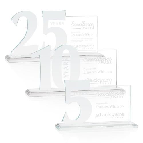 Celebrate enduring commitment and achievements with the McGrath Clear Crystal Trophy, a symbol of recognition that flawlessly blends elegance and honor. These exquisite Starfire crystal awards are designed to commemorate service milestones ranging from 5, 10, 15, to 25 years, each meticulously crafted with contoured frosted numerals to mark each significant epoch. The sleek, clear form offers a generous area for personalized deep-etch engravings, expressing your heartfelt gratitude and admiration with a touch of personal flair. The trophy sits on a choice of a clear or colored crystal base, providing a stable and stylish foundation that complements its sparkling presence. Whether for a corporate anniversary or a personal accolade, this trophy is a timeless keepsake that recipients will treasure for years to come.