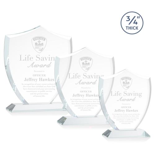 Celebrate distinguished achievements with the Escamilla Shield Clear Unique Crystal Trophy, an emblem of honor and commendation. Crafted from premium Starfire Crystal, this trophy boasts an impressive 3/4" thickness, lending substantial weight and a luxurious feel. Its shield shape embodies protection and valor, ideal for recognitions in fields such as first response and law enforcement. The beveled edges add a touch of elegance, catching light from every angle, while the sleek, optical crystal base provides a sturdy and refined foundation. This trophy's clarity and brilliance are a fitting match for the purity of triumph it represents. Whether for a life-saving hero or a pillar of authority, bestow a token of appreciation that is as enduring as their dedication.