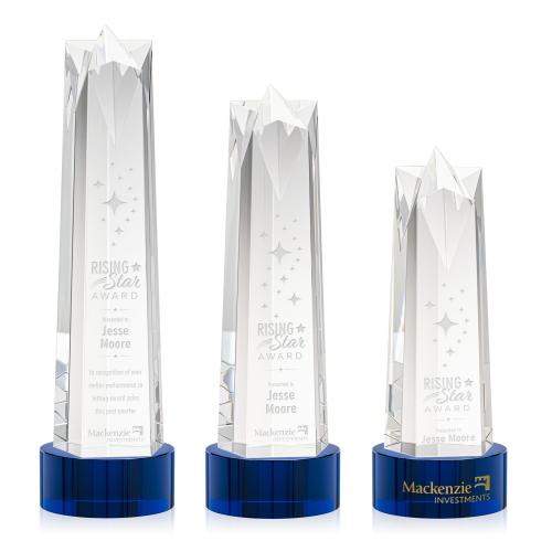 Celebrate excellence and star achievements with the Hurst Star on Round Base - Blue, a testament to accomplishment and prestige. This towering obelisk, elegantly crafted from the finest Optical Crystal, commands attention with its sophisticated and sharp lines culminating in a pristine star at its apex. Its deep blue base adds a touch of distinction and can be tailored to honor the recipient with custom engraving, highlighting their name, dedication, or a memorable date on its flat surface. Ideal for corporate awards, recognition ceremonies, or as a token of high esteem, this award is not just a trophy but a lasting emblem of success. Whether for acknowledging rising stars or celebrating career milestones, the Hurst Star on Round Base is a truly bespoke piece that resonates with excellence.