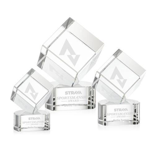 Celebrate achievements with a touch of luminous clarity when you choose the Klein Half-Round Base Clear Square / Cube Crystal Trophy. This resplendent award is expertly crafted from the finest optical crystal, ensuring a flawlessly transparent aesthetic that captures and refracts light, illuminating accolades and milestones. Boasting a sleek square or cube design with an elegant single beveled edge, it creates an impressive visual impact. Each trophy sits atop a choice of a clear, ebony, emerald, or sapphire half-round optical crystal base, allowing for personalization that truly resonates with the recipient. Whether utilized as a sophisticated paperweight, a testament to one's achievements, or simply as an elegant decorative piece, this crystal trophy represents the epitome of appreciation and recognition. Let the Klein Crystal Trophy convey your esteem and respect for excellence on any desk, shelf, or display case.