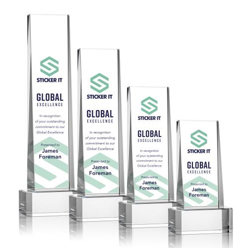 Elevate your recognition program with the Kirkpatrick Full Color on Base Clear Towers Crystal Trophy, a magnificent symbol of success and excellence. This expertly crafted optical crystal award embodies elegance with its sleek tower design, mounted on a flawless clear crystal base that provides stability and grandeur. The award features a slanted front, creating an ideal canvas to display your custom message and allowing for vibrant full-color VividPrint that will make your accolade truly stand out. Whether to celebrate corporate achievements, personal milestones, or scholastic excellence, this crystal trophy is an outstanding choice, ensuring the recipient feels exceedingly proud and celebrated.
