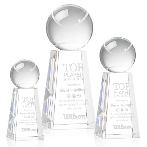 Elevate the recognition of tennis achievements with the Tennis Ball Globe on Tall Base Crystal Trophy, a celebration of both artistry and sport. Expertly crafted from premium crystal, this trophy features an exquisite tennis ball globe, poised as the crowning detail. The ball's optical crystal composition magnificently refracts light, illuminating the passion and precision inherent in every serve and volley. Each trophy stands majestically upon an elegant optical crystal base, providing ample space for personalized engravings of logos or accolades. This trophy is not merely an award but a symbol of excellence that makes an unforgettable gift or keepsake for remarkable performances in tournaments, competitions, and memorable tennis events. With its harmonious blend of design and substance, this Tennis Ball Globe trophy is an outstanding tribute to the sport's enthusiasts' unwavering dedication and skill.