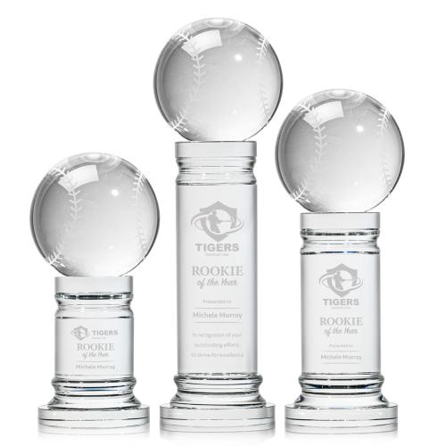 Honor a home-run achievement with the exquisite Baseball Globe on Pedestal Base Crystal Trophy. A symbol of craftsmanship and the love of the game, this trophy features a perfectly crafted optical crystal baseball elegantly resting atop a stately pedestal base. The crystal globe captures and bends light into a dazzling spectacle, making it a striking centerpiece for any display. Ready for customization, the pedestal's clear surface is ideal for engraving accolades, logos, or names, making it not just an award, but a personalized memento of success. Whether for tournaments, player recognition, or as a thoughtful gift, this trophy is a grand slam for celebrating baseball's finest moments.