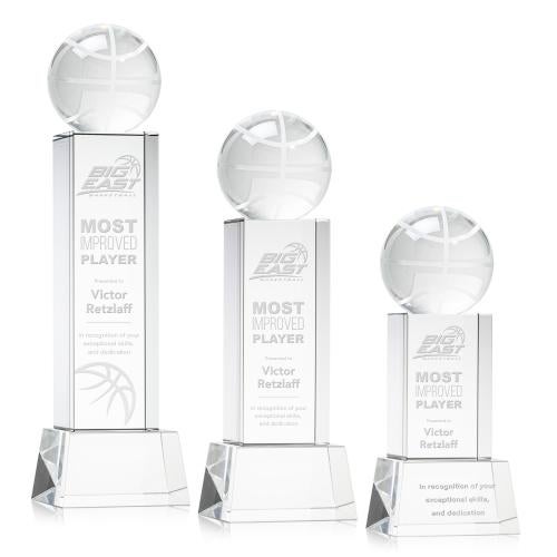 Celebrate every jump shot, assist, and slam dunk with the Basketball on Belcroft Base Clear Globe Crystal Trophy, an embodiment of athletic spirit and elegance. Crafted from the finest optical crystal, this trophy features a stunning globe replication of a basketball poised gracefully at the pinnacle, ready to inspire every player and fan. Resting on a pristine Belcroft base, which offers ample space for personalized engravings, logos, or messages, this award is designed to shine under any light, casting a symphony of reflections that bring the game's energy to life. Perfect for player accolades, team mementoes, or as a token of appreciation for coaches and sponsors, this trophy's clarity and detail set a new standard for recognition in the world of basketball. Whether for a local league or a professional tournament, this crystal masterpiece is an impressive and timeless gesture of excellence and passion for the beloved sport.