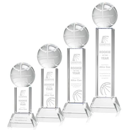 Celebrate every slam dunk, every buzzer-beater, and the spirit of the game with the Basketball on Tower Base Clear Globe Crystal Trophy from Trophy.com. Meticulously designed to stand out, this crystal award boasts a carefully crafted globe resembling a basketball, poised atop a striking optical crystal tower base. The base serves as an elegant canvas for personalization-ideal for engraving with a player's name, team logo, or a special message, making it a unique and meaningful recognition for top performers or memorable contributions on the court. Optional colorfill and a second position etch add further customization to this exquisite piece. Perfect for basketball tournaments, individual player awards, or as a treasured keepsake, this trophy ensures your accolade will be remembered long after the final whistle.