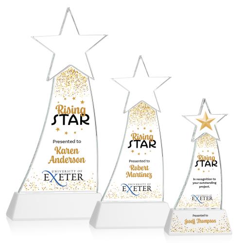 Elevate the moment of recognition with the Manolita Full Color Fagan Star Crystal Trophy, a symbol of excellence for standout achievers. Masterfully crafted from the finest Optical Crystal, this trophy exudes a flawless clarity that captures and reflects the light with a dazzling brilliance. The design features a graceful ascent to a proud star, celebrating the award's recipient with its celestial-inspired motif. Choose between a classic clear or a vibrant colored base to complement the sparkle of the crystal. This award is an ideal canvas for custom personalization, enabling your inscription to become part of the trophy's stunning display. Each Manolita Star trophy comes nestled within a luxurious black satin-lined presentation box, making it a breathtaking gift that is sure to leave a lasting impression. Optional second and third position imprints are available to further tailor the recognition to your event. Recognize the rising stars in your organization or competition with this illustrious accolade.