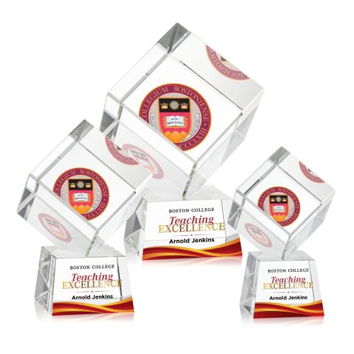 Elevate your recognition program with the Klein Full Color on Small Base Clear Square Crystal Trophy-a testament to achievement and professional excellence. Crafted from the most immaculate Optical Crystal, this award boasts a flawlessly polished cube boasting exceptional clarity. Its elegance is accentuated by a delicate beveled edge, adding a touch of sophistication to every angle. Offered with a selection of tapered Optical Crystal bases in either Clear, Ebony, Sapphire, or Emerald, this trophy provides a vibrant backdrop for your bespoke message utilizing our full color VividPrint technology. Whether as a distinctive award, an executive paperweight, or a commemorative keepsake, this square crystal cube is a versatile choice for honoring outstanding performance or expressing gratitude. Please note that all items come blank, ready to be customized with your unique design.