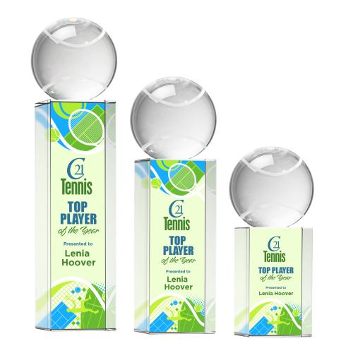 Elevate your recognition game with the Tennis Ball Full Color Globe on Yoder Crystal Trophy-a hallmark of excellence for any tennis aficionado. This exquisite award captivates with its full-color, meticulously crafted Optical Crystal tennis ball, poised atop a sleek Optical Crystal base that gleams with brilliance and clarity. Perfect for commemorating victories on the court, this trophy offers a space on the base for bespoke personalization, making it an ideal gift or keepsake for tournaments, victories, or milestone moments in any tennis player's journey. Whether displayed in a trophy case or an office, this stunning crystal keepsake promises to be a conversation starter and a cherished emblem of sporting passion.