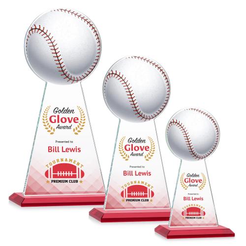Celebrate the spirit of the game with the Edenwood Baseball Full Color Red Towers Crystal Trophy, a stunning accolade designed to honor the passion and prowess on the baseball diamond. Constructed from premium crystal, this eye-catching trophy showcases an artful tower configuration, gracefully ascending to cradle a circle emblazoned with the realistic imagery of a baseball-the universal icon of the sport. The vivid full-color graphics are exemplified through VividPrint technology, allowing for personalized achievements or team logos to be showcased in dynamic detail. Poised on a tastefully beveled base, available in an array of eight color choices, this award is tailored for individual recipients or whole teams, perfect for tournament awards, special recognitions, or as a token of appreciation to those who breathe life into baseball. Whether for a fantastic catch, a season of great plays, or a lifetime of dedication, the Edenwood trophy stands as a testament to outstanding baseball achievements.