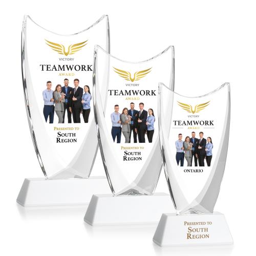 Elevate the celebration of excellence with the Singleton Full Color Fagan Peaks Crystal Trophy, a symbol of achievement crafted from the purest optical crystal. This stunning award features deep, elegantly curved bevels along its back, artfully tapering to the ends of its concave pinnacle, embodying the metaphorical ascent to success. Its highly polished surfaces highlight the intrinsic beauty and clear sparkle of the crystal. Enhanced by our vivid full-color VividPrint technology, the trophy comes to life, proudly showcasing any custom logo or heartfelt message. Resting on a pristine optical base, this trophy not only stands as a exquisite memento of triumph but also as a sophisticated décor piece. Whether it's for recognizing team efforts, individual excellence, or momentous achievements, the Fagan Peaks Crystal Trophy is a striking choice to honor the pinnacle of accomplishment.