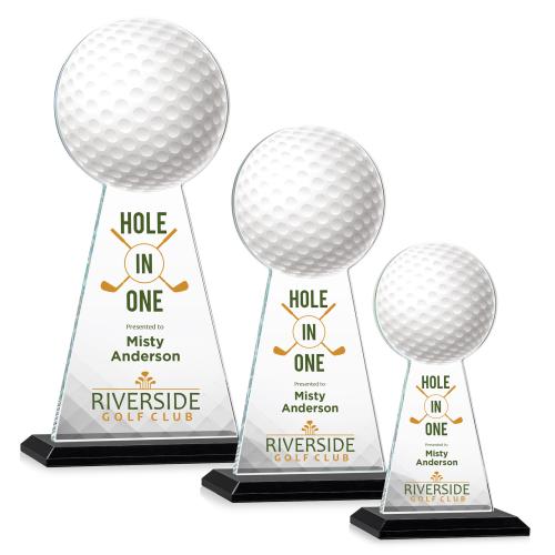 Celebrate golfing excellence with the Edenwood Golf Full Color Black Towers Crystal Trophy, a prestigious award that combines contemporary design with traditional elegance. Precision-crafted from radiant crystal, this trophy catches and reflects light, symbolizing the pinnacle of golfing accomplishments. The striking towers silhouette, accented with a unique golf-ball motif at its apex, is perfectly poised on a beveled base available in eight vibrant color options to match any club's palette. Personalize this stunning piece with full-color VividPrint to commemorate tournament victories, hole-in-one achievements, or to honor the commitment of players and patrons alike. Elevate recognition to an art form with this timeless symbol of golfing glory.