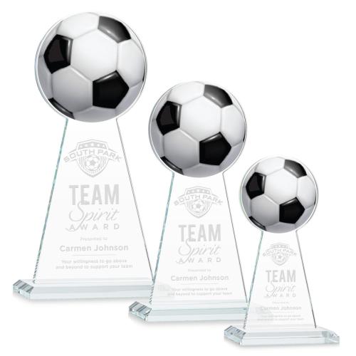 Celebrate soccer achievements with the spectacular Edenwood Soccer Clear Towers Crystal Trophy, a symbol of excellence for both team and individual accolades. This refined award, featuring the iconic silhouette of a soccer ball, is meticulously crafted from premium crystal, offering a radiant token of appreciation for tournaments, standout performances, and heartfelt dedication. Each trophy is designed with elegant sloping sides leading up to the ball-shaped summit, poised atop a choice of eight different colored beveled bases for optimal personalization. Whether honoring a 'Player of the Year,' commemorating a winning goal, or simply celebrating participation and commitment, this trophy promises to capture the spirit of the sport and the glory of the moment.