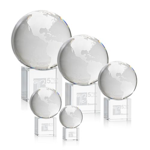 Celebrate achievement and recognize success with our exquisite Globe on Cube Crystal Trophy, a timeless symbol of global aspirations and accomplishments. Each trophy features a flawlessly crafted optical globe, resting atop a polished crystal cube that can be customized to your liking. The globe, meticulously detailed and effortlessly rotatable, represents the interconnectedness and reach of your honoree's achievements. Available in five distinct sizes to suit any occasion, this trophy is an elegant choice for corporate awards, educational milestones, or as a distinctive gift for the esteemed global citizen. Embrace the beauty and clarity of crystal to convey your message of excellence and worldly prestige with this stunning award.