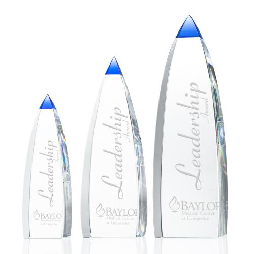 Celebrate outstanding achievements with the exquisite Perez Obelisk Crystal Trophy, a symbol of pinnacle success. This stunning award is meticulously crafted from thick optical crystal, ensuring a luxurious weight and clarity that catches and refracts light in a dazzling display. The trophy's commanding obelisk shape draws the eye upward, signifying growth and aspiration, while the tasteful blue accent at the tip adds an elegant touch of color that enhances its sophisticated design. Perfect for engraving, the flawlessly smooth surface provides ample space for personalized messages, logos, or names, making the trophy a bespoke memento for any recipient. Whether recognizing a corporate milestone, personal accomplishment, or team victory, the Perez Obelisk Crystal Trophy is an enduring testament to excellence that will be cherished for years to come.