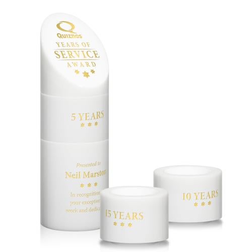 Celebrate milestones with the Corbin Stacker Fagan Towers Crystal Trophy, a symbol of distinction and innovation. Expertly crafted from optical crystal, this award exemplifies prestige with its tower design, comprising a striking base, a top block, and one intermediate stacking block for a customizable arrangement. Its circular elements convey unity and progression, perfect for acknowledging continuous achievement and dedication. Starting as a pristine blank canvas, each trophy can be personalized to reflect your esteemed accolades, making it an ideal choice for service awards, team accomplishments, or individual recognition. Whether displayed in an office, boardroom, or at a special event, this trophy will serve as a lasting emblem of success and excellence.