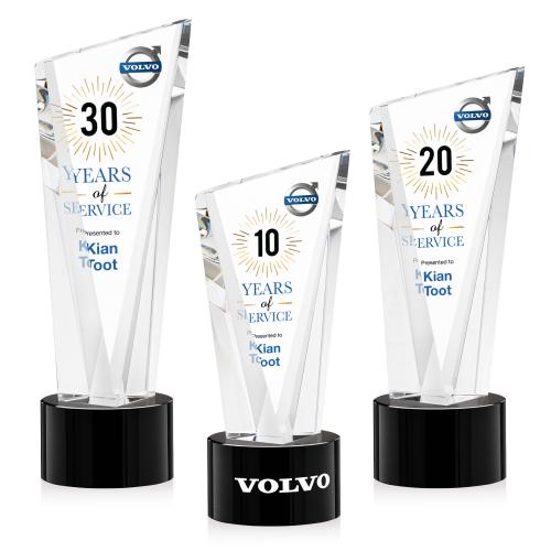 Celebrate excellence and commemorate milestones with the Maher Full Color on Round Base Black Peaks Crystal Trophy. This sophisticated award, with its dynamic peaks design, commands attention with its crisp crystal edges and robust black base. Each trophy comes to life with the option of full-color VividPrint, allowing personalized messages and logos to stand out vibrantly against the translucent crystal. Crafted for those who have scaled the heights of achievement, this trophy is not merely a memento but a striking display of recognition. Whether for acknowledging service anniversaries, corporate success, or individual prowess, this piece is crafted to honor the noteworthy contributions with elegance and lasting impact.