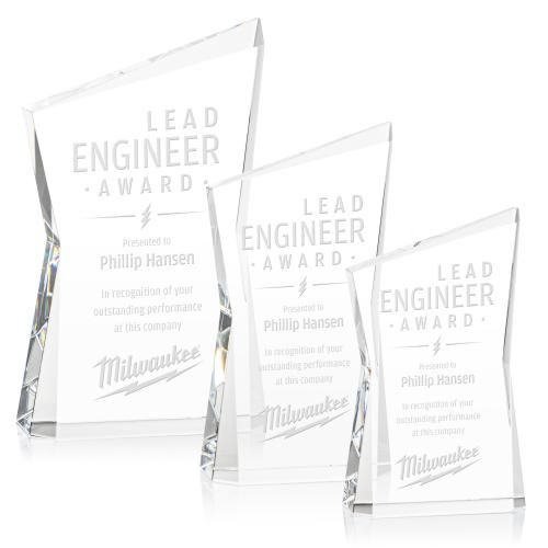 Celebrate the pinnacle of success with the Roswell Peaks Crystal Trophy, a symbol of prestige and recognition in the corporate world. This exquisite trophy is meticulously crafted from the finest optical crystal, featuring a unique bowtie shape and an elegantly beveled peak that catches and refracts light, creating a mesmerizing display of sparkling clarity. The trophy's thick, freestanding design ensures it stands proudly on any shelf or desk, representing the highest standards of excellence and achievement. Whether you're honoring a standout employee, a remarkable leader, or a significant milestone, this timeless and sophisticated award is the perfect expression of esteemed accolades and heartfelt appreciation. Please note that while the image shows an example of personalization, all items are provided blank, offering a canvas to tailor your specific congratulatory message.