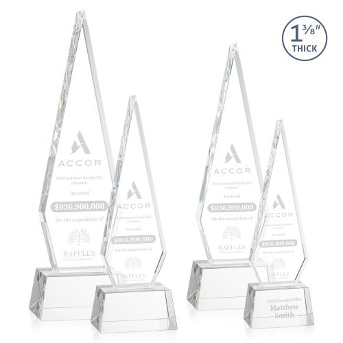 Celebrate achievement and commemorate outstanding performance with the Cullen Clear Polygon Crystal Trophy. This resplendent optical crystal award boasts an elongated diamond shape that stands an impressive 1 3/8 inches thick. Its polygonal silhouette and precision-cut edges catch and reflect light, creating a spectacle of brilliance and clarity that will dazzle any recipient. Masterfully designed to stand as a testament to excellence, this trophy is perfect for corporate recognition, with the added versatility of optional 2nd position etching to tailor to individual or event-specific accolades. The sophistication of the sleek design and the luminous charm of the crystal make it the ultimate token of appreciation for any celebrated milestone.