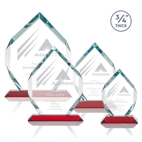 Celebrate achievement with the Diamond Red Polygon Crystal Trophy, an epitome of elegance and recognition. This exquisite award is meticulously crafted from premium crystal, designed in a captivating polygon shape that catches the eye from every angle. The trophy's symmetrical six-sided Starfire crystal design, with constant-width bevels on selected edges, creates an array of sparkling reflections and highlights the centerpiece for your personalized message of excellence. Resting on a contrasting red base that adds a touch of grandeur, this award stands at an impressive 3/4" thickness, ensuring a substantial and prestigious feel. Ideal for commemorating milestones, corporate achievements, or exceptional dedication, this sophisticated trophy is a tangible expression of admiration and appreciation that will be treasured for years to come.