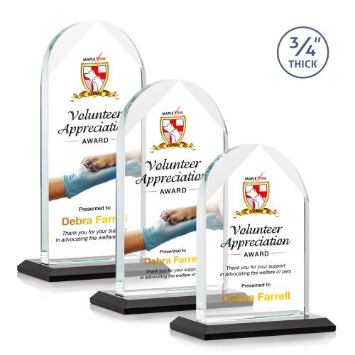 Elevate the moment of recognition with the Cortez Full Color Black Peaks Crystal Trophy, a symbol of excellence that combines contemporary design with classic elegance. This stunning trophy is crafted from premium Starfire Crystal, featuring an exquisite beveled arch that rises to a striking peak, capturing the essence of achievement. Its full-color customization option allows for vibrant and detailed personalization, ensuring that each award is as unique as the accomplishment it celebrates. Mounted on a sleek, black mitered crystal base, this trophy is not just an award, but a cherished keepsake that stands ¾" thick, making a bold statement of recognition and appreciation. Ideal for corporate recognitions, volunteer appreciation, or any prestigious event, the Cortez Trophy immortalizes success with its flawless craftsmanship and radiant presence.