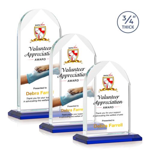 Elevate your recognition game with the Cortez Full Color Blue Peaks Crystal Trophy, a symbol of excellence that embodies elegance and accomplishment. This exquisite award, crafted from premium crystal, boasts a captivating peaks design that inspires awe with its clear, beveled arch rising majestically to the sky. The trophy sits proudly atop a mitered blue crystal base which not only adds a splash of color but also a sturdy foundation, enhancing the display. With a generous surface allowing for full-color personalization, this trophy is ideal for celebrating milestones and honoring individuals who have reached the pinnacle of success in the corporate world. Whether for an employee recognition event, a leadership award, or a special achievement, the Cortez Trophy is a tangible manifestation of admiration and gratitude that will be treasured for years to come.