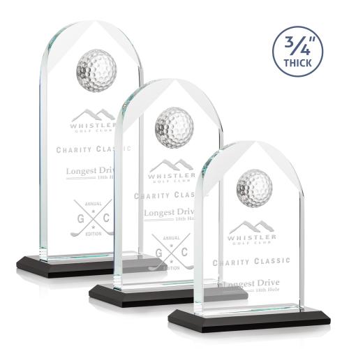 Celebrate a triumph on the fairway with the Cortez Golf Black Globe Crystal Trophy, a pinnacle of recognition for any golf enthusiast. This exquisite piece is crafted from premium Starfire Crystal, featuring an elegantly beveled arch that culminates in a meticulously detailed Optical Crystal Golf Ball. The globe and peaks design symbolize the global and pinnacle aspects of the sport, while the sparkling clarity of the crystal reflects the prestige of the achievement. The trophy boasts a sturdy black crystal base, perfect for personalized engravings to commemorate the victor's name or the event. With a substantial 3/4" thickness, this award resonates with the grandeur of the moment, making it an outstanding choice for your most celebrated golfing milestones.