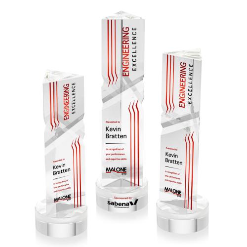Discover the elegance of our Groves Full Color on Lockwood Base Clear Towers Crystal Trophy, expertly crafted from high-quality optical crystal. This trophy stands out with its unique triangular shape and deep, interchanging facets, beautifully capturing and reflecting light. A sophisticated choice for recognizing exceptional achievements, it offers a perfect backdrop for personalization with full-color VividPrint. The clear towers, set on a sturdy Lockwood base, create a stunning presentation that will elevate any ceremony or display. This award is an impeccable blend of modern design and timeless brilliance, ideal for showcasing your appreciation in style.