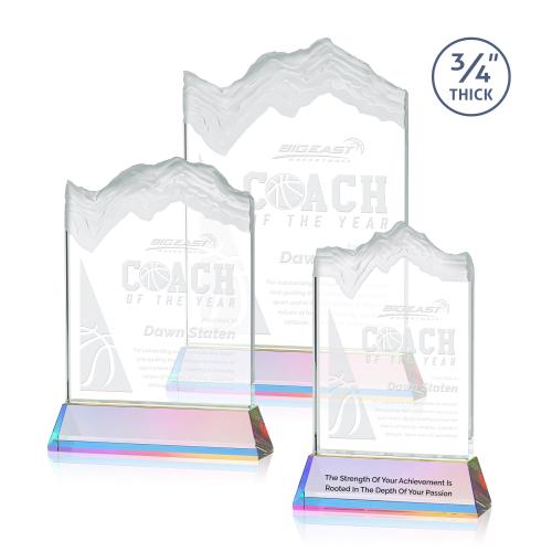 Celebrate monumental achievements with our Prismatic Peaks Crystal Trophy, a masterpiece of both artistry and elegance. This impressive award showcases deep carved and frosted peaks, crafted from 3/4" thick Starfire Crystal, reflecting the pinnacle of success. It stands proudly on a sleek, tapered Optical Crystal Newhaven Base, adding a touch of sophistication. Ideal for honoring exceptional accomplishments, this trophy offers customization options to personalize each piece uniquely. Its refined design makes it not just an award, but a cherished symbol of perseverance and excellence.