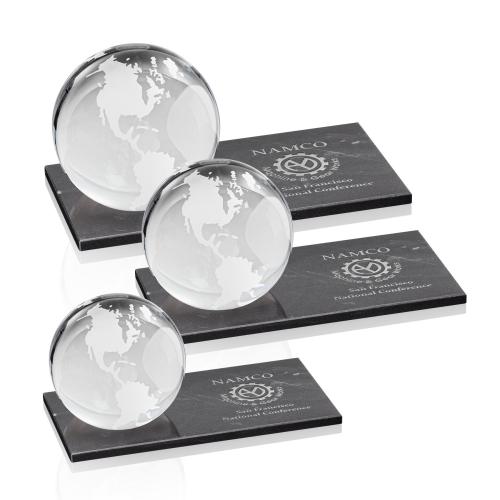 Celebrate global achievement with our exquisite Globe on Rectangle Marble Base Crystal Trophy. This distinguished award features a beautifully etched crystal globe, showcasing the world's continents in stunning detail. It rests elegantly on a sleek black marble base, offering a perfect blend of sophistication and modernity. Crafted from premium materials including crystal, wood, and stone, this trophy is designed to make a lasting impression. Personalization options are available, with hand-deep etching and one colorfill included, allowing you to tailor this piece to fit any occasion. Ideal for recognizing excellence on a worldwide scale, this award is both a meaningful and decorative addition to any desk or display.