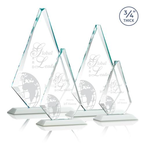 Introducing the Crowell Fagan Diamond Crystal Trophy, an elegant choice for corporate recognition that speaks volumes of achievement and excellence. Crafted from premium Starfire Crystal, this award features a striking 0.75" thick diamond shape with sparkling beveled edges, capturing and reflecting light beautifully. The trophy is mounted on a sleek white crystal mitered base, providing a sturdy and stylish foundation. Perfectly designed for personalization, it's a remarkable way to honor success and dedication. Celebrate milestones and inspire greatness with this timeless and distinguished award.