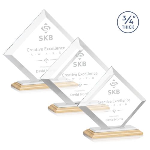 Introducing the Carlson Bamboo/White Diamond Wood Trophy, a stunning tribute designed to celebrate excellence and achievement. Crafted with precision, this award features a **.75-inch thick** Starfire Crystal shaped into a magnificent diamond, set atop a triple-stepped Bamboo Base that adds an elegant and natural touch. The mitered edges enhance the award's allure, capturing and reflecting light to highlight your personalized message of recognition with brilliance. Ideal for corporate settings, this trophy not only honors achievement but also stands as a striking symbol of success. Personalization options allow you to tailor each award to perfectly commemorate individual accomplishments, making it a cherished keepsake.
