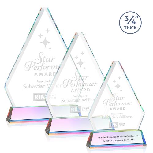 Presenting the Mayer on Helton Prismatic Diamond Crystal Trophy, a stunning piece destined to honor remarkable accomplishments. Crafted from premium crystal, this award features a sophisticated diamond shape, accentuated by deep bevels that catch and reflect light, adding elegance to any recognition event. Its tall, tapered prismatic base provides a striking support, enhancing its majestic appearance. This trophy offers the option for a second imprint, allowing for personalized messages that truly capture the essence of your appreciation. Ideal for corporate achievements, it serves as a lasting testament to exceptional dedication and success.