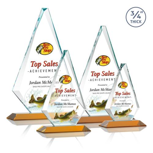 Introducing the Crowell Full Color Amber Diamond Crystal Trophy, an exceptional choice for corporate recognition and celebratory achievements. This elegant trophy boasts a 0.75" thick Starfire Crystal crafted into a striking diamond shape, complete with interchanging facets that beautifully catch and reflect light. Mounted on a mitered crystal base available in vibrant colors, it effortlessly enhances any event or award ceremony. With the option for full-color VividPrint customization, you can make your message truly stand out, ensuring a memorable and personalized touch. Elevate your recognition efforts with this classic and sophisticated design that embodies prestige and excellence.