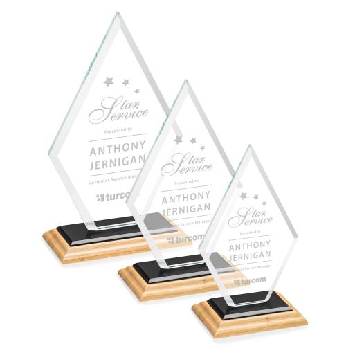 The Spicer Bamboo/Black Diamond Wood Trophy is an exquisite symbol of achievement, ideal for celebrating outstanding accomplishments in any corporate setting. Crafted from a harmonious blend of elegant Starfire Crystal and rich wood, this award features a striking diamond shape with finely beveled edges, ensuring a dazzling display of recognition excellence. Whether presented for reaching new heights or honoring a job well done, the trophy's sophisticated design captures the essence of success and prestige. Personalize the award on your choice of base to make a lasting impression on recipients, showcasing both beauty and the honor of achievement.