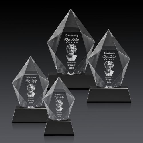 Celebrate extraordinary accomplishments with the Barron 3D on Base Black Polygon Crystal Trophy. This stunning award is crafted from premium Optical Crystal, featuring a sophisticated polygon shape that captures and refracts light, creating a dazzling halo effect around your personalized message of achievement. Elegantly mounted on a sleek black base, this award offers an impression of grandeur and timeless beauty. Choose from eight distinct base colors to add a personal touch. With optional second position etching and colorfill, this trophy becomes a deeply personalized tribute to excellence, perfect for commemorating any significant milestone or celebration.