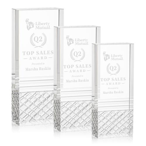 Celebrate excellence with the Hilldale Rectangle Crystal Trophy, a stunning freestanding award that embodies sophistication and modernity. Crafted from high-quality optical crystal, this award features a distinctive argyle pattern at its base, adding elegance and style. Its sleek, rectangular design towers proudly, making it a timeless choice for recognizing top achievements in sales or any industry. Personalization options allow this blank canvas to be tailored to your specific occasion, ensuring a truly meaningful tribute. This crystal trophy not only honors outstanding performance but also stands as a lasting symbol of success and dedication.