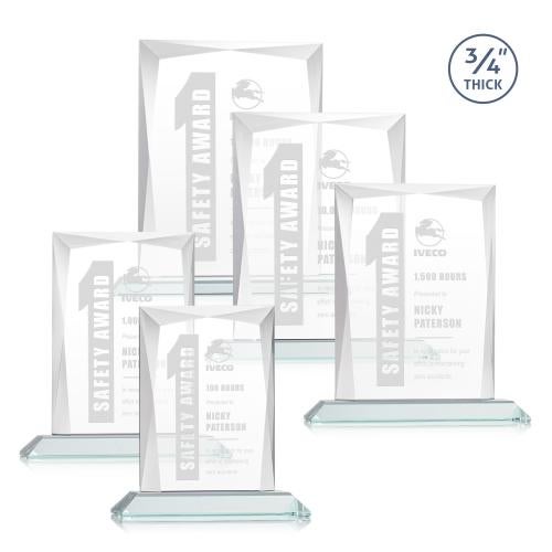 Introducing the Cassidy Starfire Rectangle Crystal Trophy, a timeless piece of distinction for those exceptional achievements. Crafted from thick 3/4" Starfire Crystal, this award is characterized by its elegant rectangle shape and striking interchanging bevels. These facets not only create a stunning frame around your personalized engraving but also refract light beautifully, adding a touch of brilliance to any presentation. Its clear, blank canvas is ready to be customized, making it the perfect choice for corporate awards and recognizing outstanding contributions. Celebrate success with this sophisticated and memorable trophy.