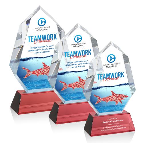 The Thomson Full Color on Helton Base Red Polygon Crystal Trophy is a stunning tribute to excellence, designed to captivate attention and embody achievement. Crafted from high-quality optical crystal, this award features striking polygonal shapes that create a dazzling interplay of light, ensuring your recognition message stands out. Its bold design is complemented by a tall, vibrant red Helton base, adding a touch of elegance and sophistication. Perfect for corporate settings, this award offers optional etching and color-fill to add a personalized touch. Celebrate outstanding accomplishments with a trophy that truly shines.